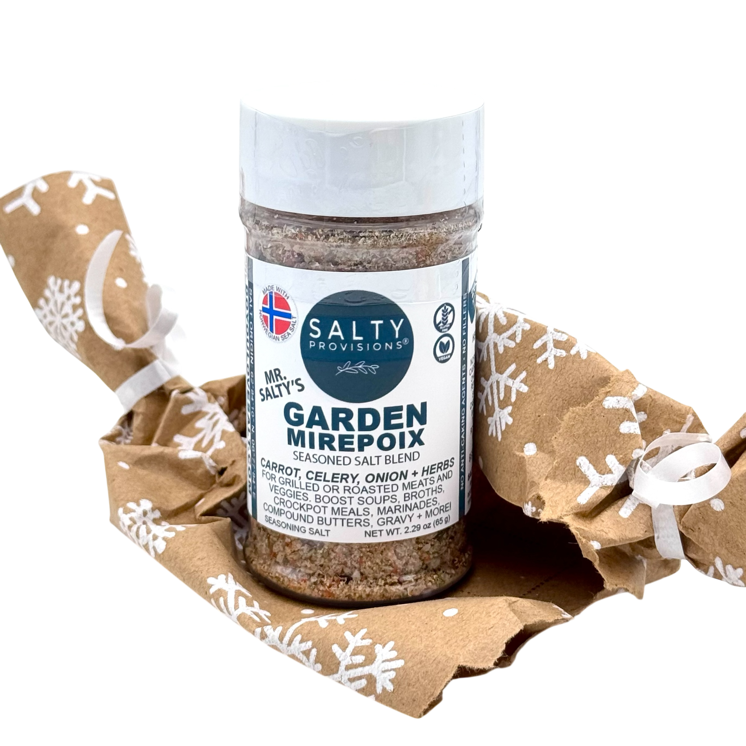 Every holiday season, we cook up something special — a secret blend crafted to surprise, delight, and keep your taste buds guessing. This year’s Mystery Flavor is no exception. Inspired by one of Mr. Salty’s favorite words to say (and yes, it’s as fun to taste as it is to say), this limited-edition blend is the perfect companion for meats, vegetables, soups, stews, and even hearty salads.