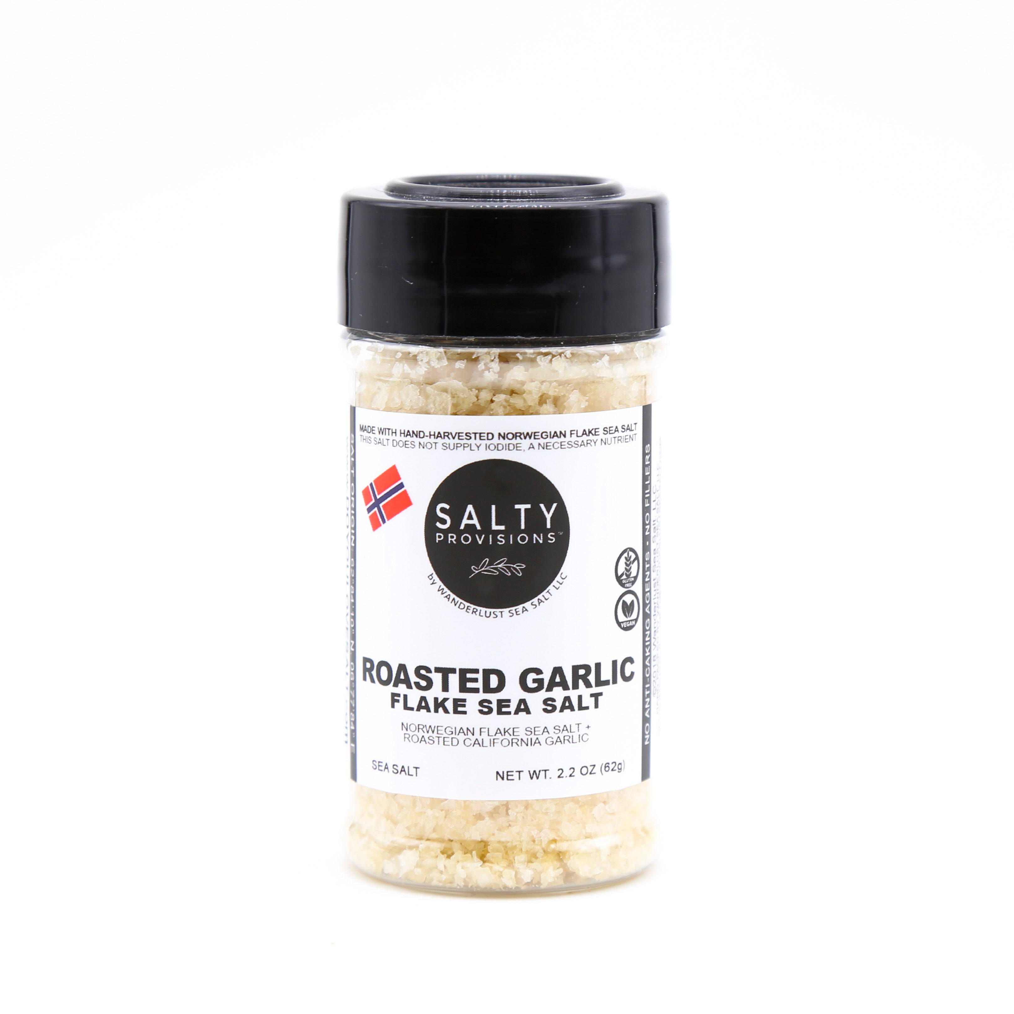 Fresh, crisp Flake Sea Salt hand-harvested from the Norwegian Sea, infused with California Garlic.